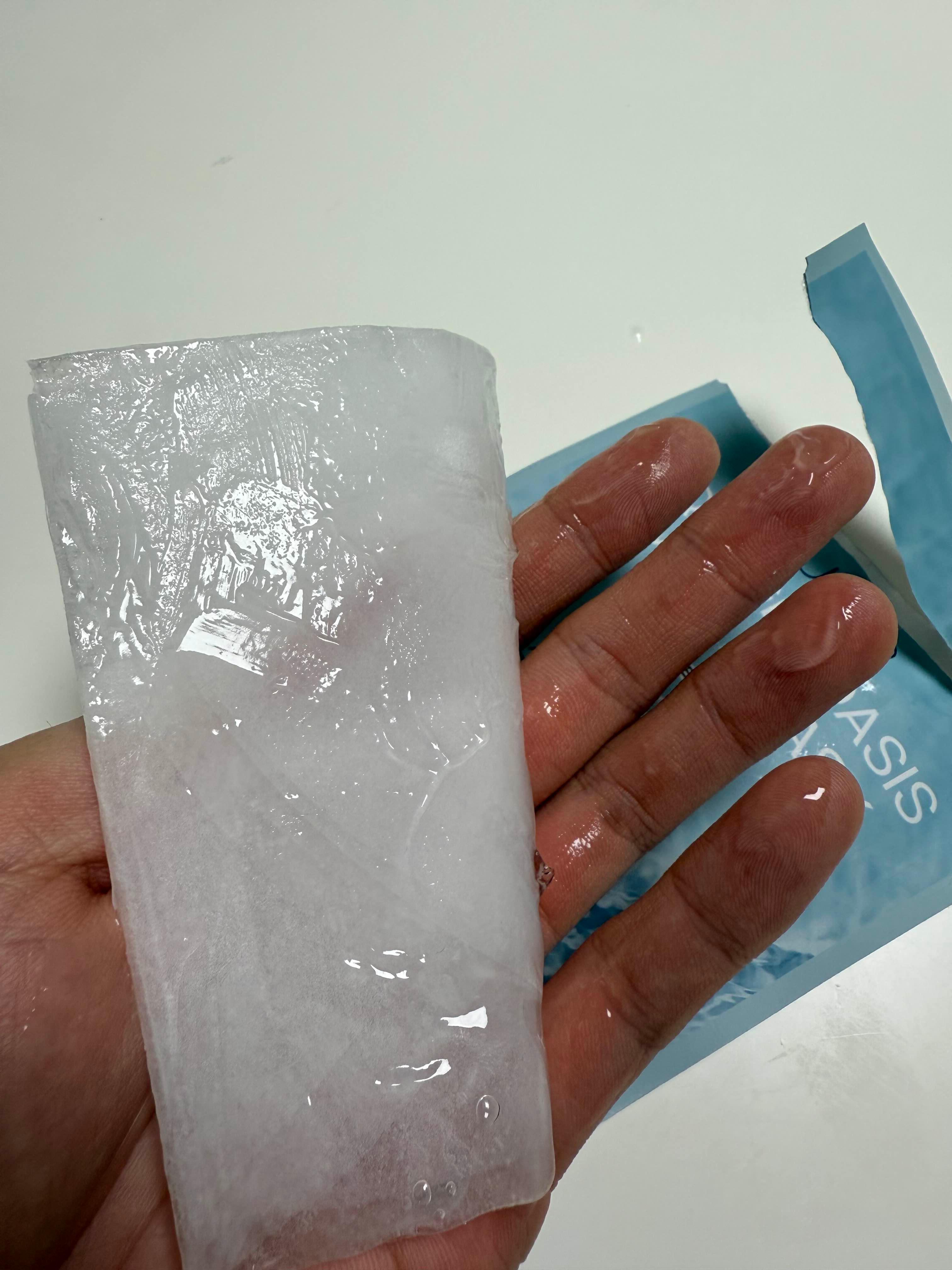겔 마스크는 뜯을 때 살짝 미끄러지니, 두 손으로 천천히 펼치는 게 좋아요.