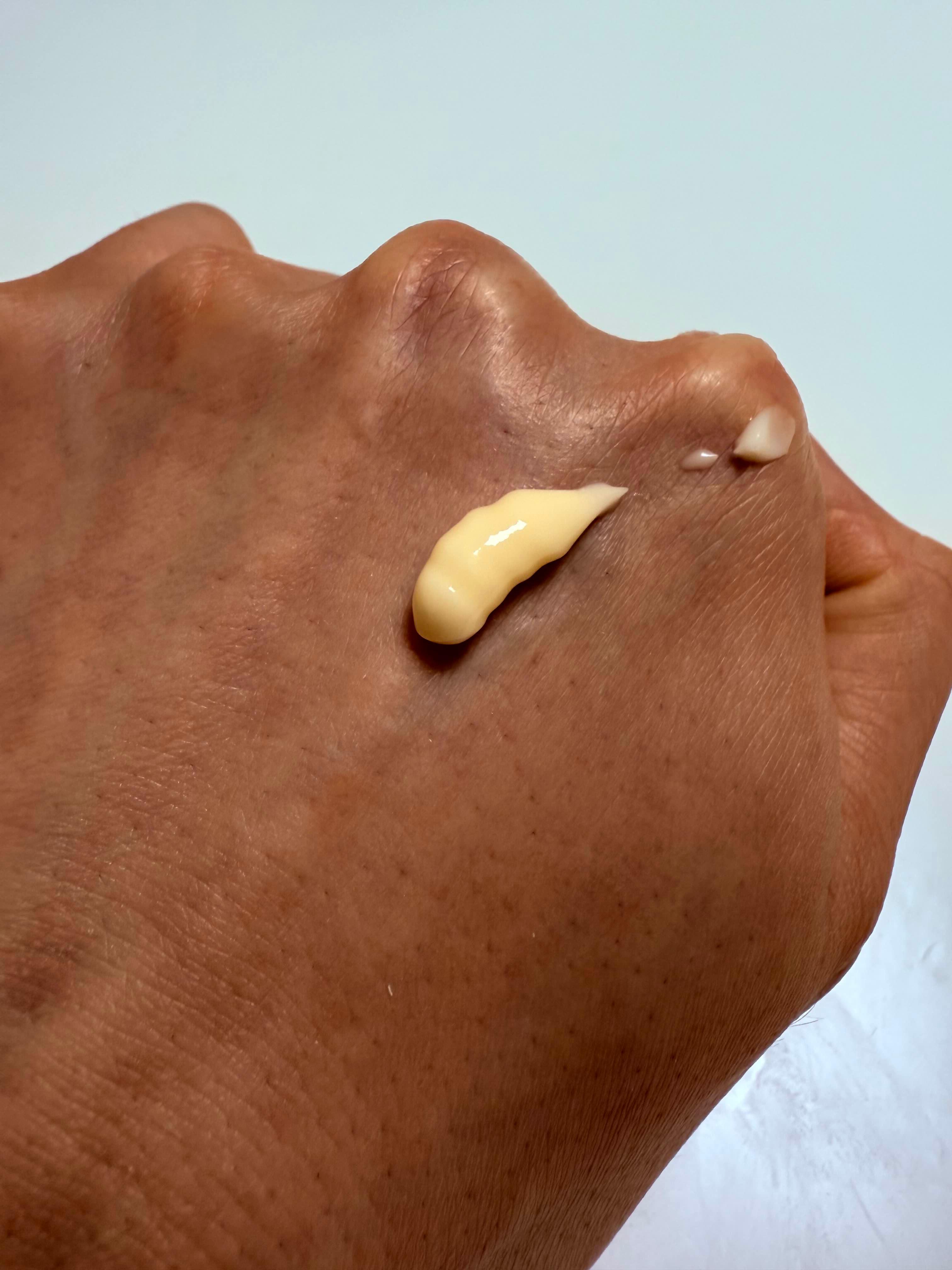 처음엔 진한 노란빛의 크림 제형에 살짝 놀랐어요. 약간 꾸덕하지만 체온에 닿으면 부드럽게 퍼지는 타입이라 얇게 바르기 좋았어요.