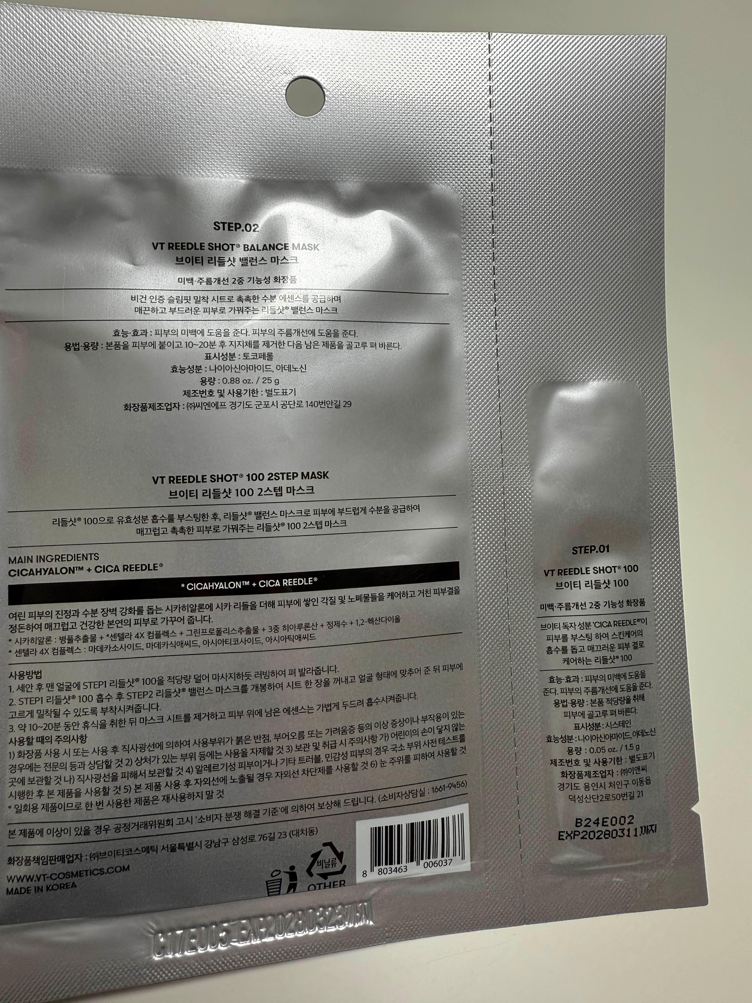 •제품명: VT 리들샷 100 2스텝 마스크